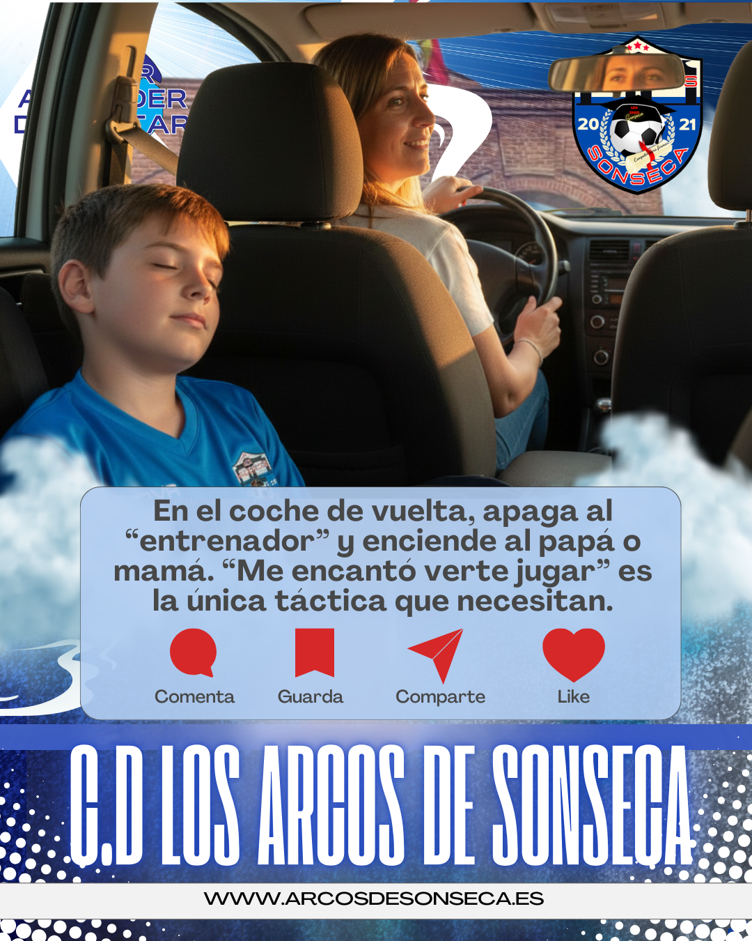 ✍️ El trayecto a casa después del partido es un momento sagrado. A menudo, con la mejor intención, los padres llenan ese espacio con correcciones técnicas o preguntas sobre el resultado. Sin embargo, como recordamos en el C.D Los Arcos de Sonseca, «el viaje en coche es para escuchar, no para dar lecciones». El niño o la niña, cansado física y emocionalmente, no necesita un segundo entrenador en el asiento del conductor; necesita un refugio seguro, comprensión y saber que su valor no depende de un marcador.
